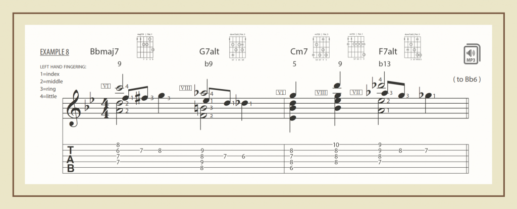 • Six exclusive video lessons where I demonstrate, step by step, how I use the course’s harmonic concepts to create chord-melody arrangements of well-known standards